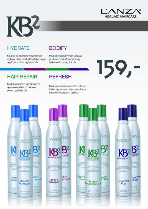 Gjelder ALLE shampo og balsam i Healing LANZA serien og i LANZA KB2 serien.