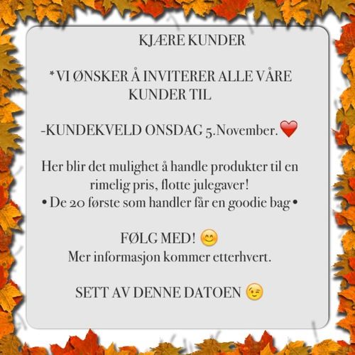 Kundekveld Onsdag 5 November kl 18-20