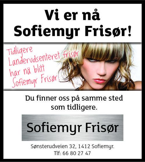 SKRIV INN SOFIEMYR FRISØR DER DET STÅR LANDERUDSENTERETFRISØR.