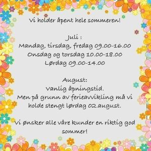 ÅPNINGSTIDER SOMMER 2014